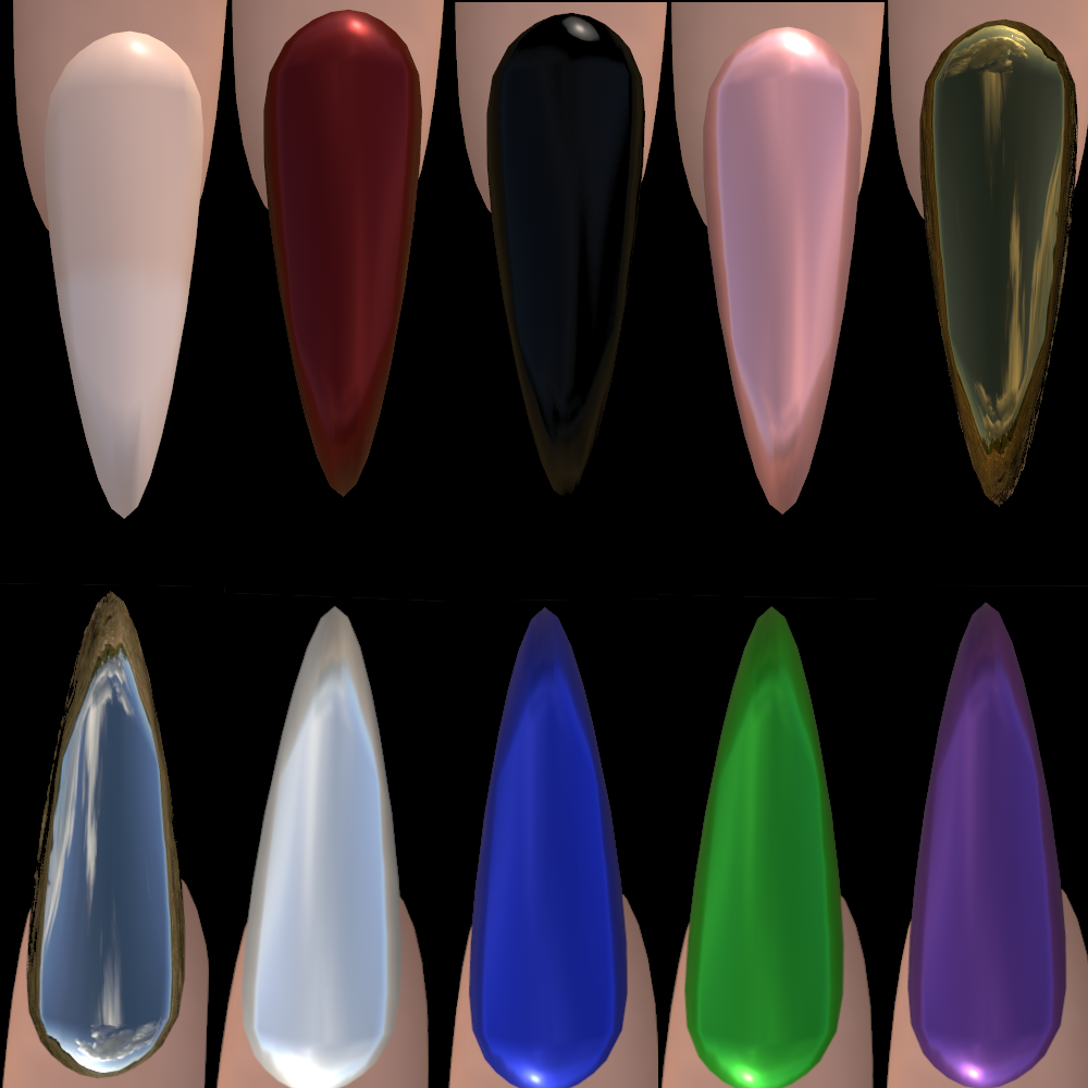 A set of three skin textures for medium skin bases, included are also a variety of nail colours , a set of 3 clothing textures and a glitter mask for both the body and nails!